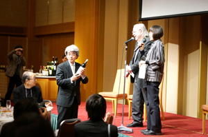 大学時代の恩師の退任記念祝賀会に出席してきました。 先生は 40年以上教授として勤め上げられ、 その間、先生に学んだかつての学生がおよそ 200名集まっていました。 先生が入場した後、一人ひとりの出欠を取るという演出で、 先生の「遅刻ですかー?」というのを聞くと、 学生に戻ったような、懐かしい気持ちになりました。 来賓として来られていたゲストがまたとても豪華で、 壇上でのスピーチが聴けただけでも満足という感じだったのですが、 思わぬところでお話しができたり、とても嬉しかったです。 先生は永きに渡って芯の強い、美しい作品を作ってこられて、 きっとそれはこれからも続いていくことと思います。 これからも先生を目標に、先生に胸を張ってお見せできるような、 きれいな仕事ができるようになりたいと思います。 それにしても、同じゼミだったにも関わらず話したことのない人が多すぎて、 未だにですが、人見知ってたなーと思います。 友達の計らいで新しい友達も増えたような、 とても有意義な一日になりました。