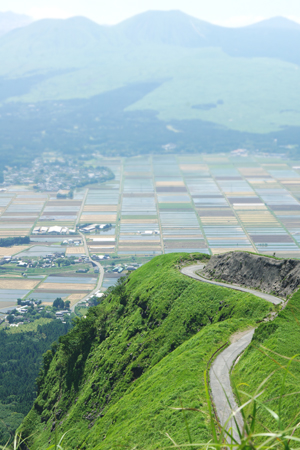 阿蘇でドライブです。 写真は天空の道というところで、 CM でも使用されたそうです。 天気がよくて気持ちよかった!
